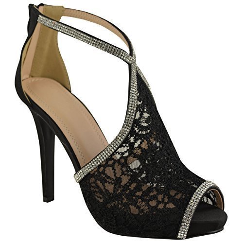 Best Seller! LADIES WOMENS WEDDING SHOES HIGH HEELS LACE DIAMANTE BRIDAL PEEP TOE SANDAL SIZE Review