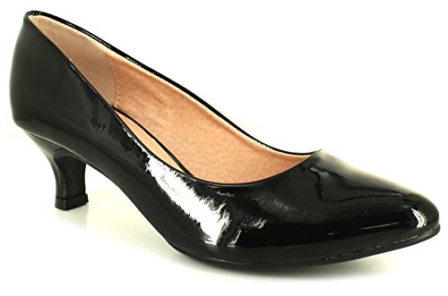 Best Seller! New Womens/Ladies Black Patent Wide Fit Kitten Heel Court Shoes - Black - UK SIZE 5 Review